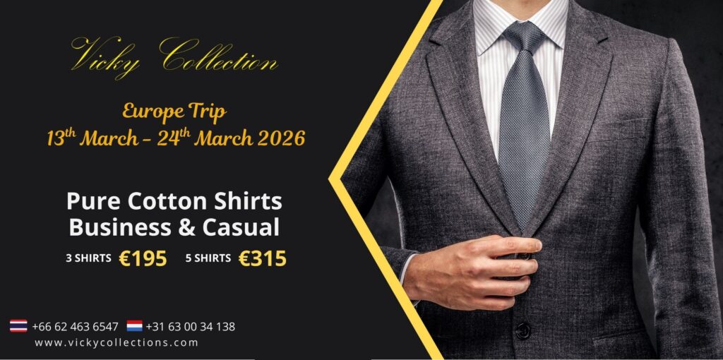 Vicky will walk you through the different fabrics and styles that are up to date of the latest trend. Next he will personally measure you and in just minutes give you a fitting for your new suit after finalizing. Within few weeks you will be pleasantly surprised that you are one of the few people who is being looked upon as you walk around your new custom tailored suit.
